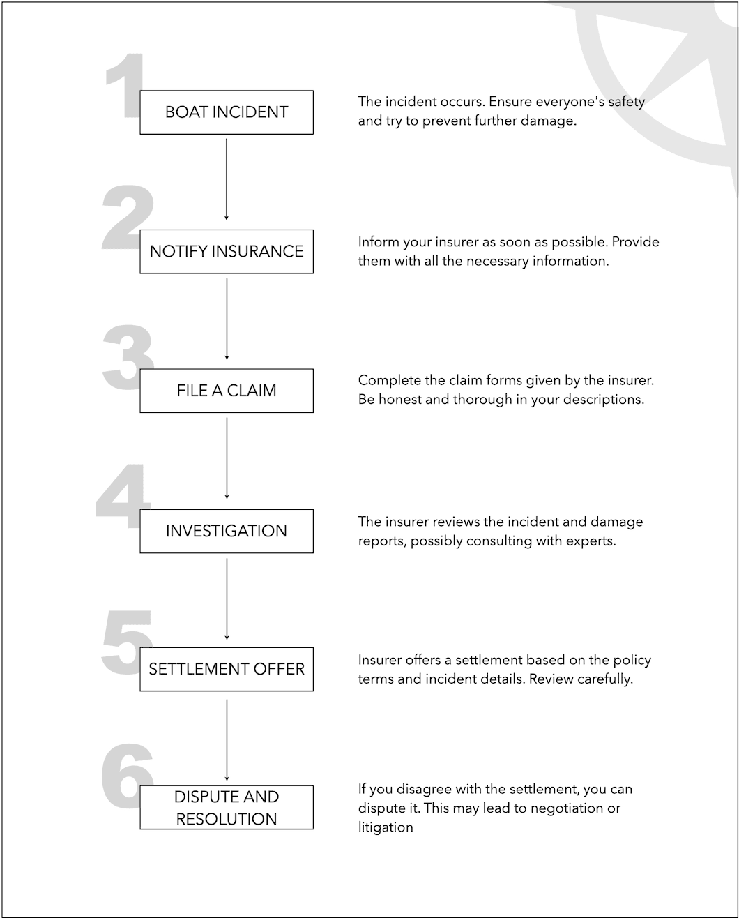 Though we wish you never have to revisit this section, it's critical to grasp the claim process for those unforeseen circumstances on the water. The flowchart below illuminates the path from incident to resolution - a step-by-step guide providing clarity and preparation for potential future hurdles.